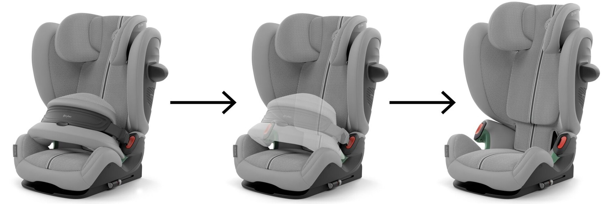 PALLAS G3 i-Size má polohovateľné sedadlo nielen pre mladšie deti, ale aj pre príjemný odpočinok starších detí. Polohovanie je novo u rady PALLAS dostupné po celú dobu používania autosedačky.